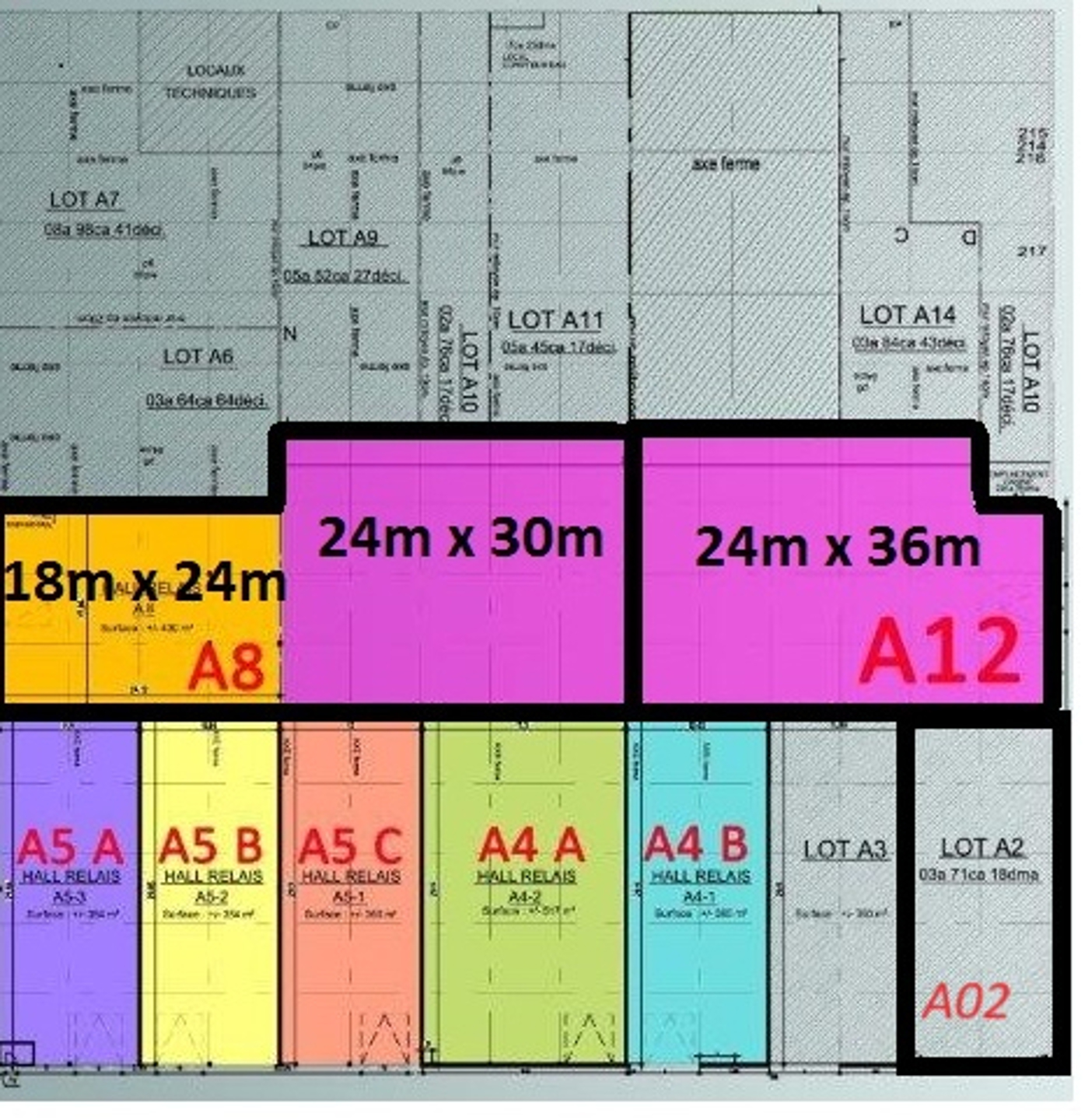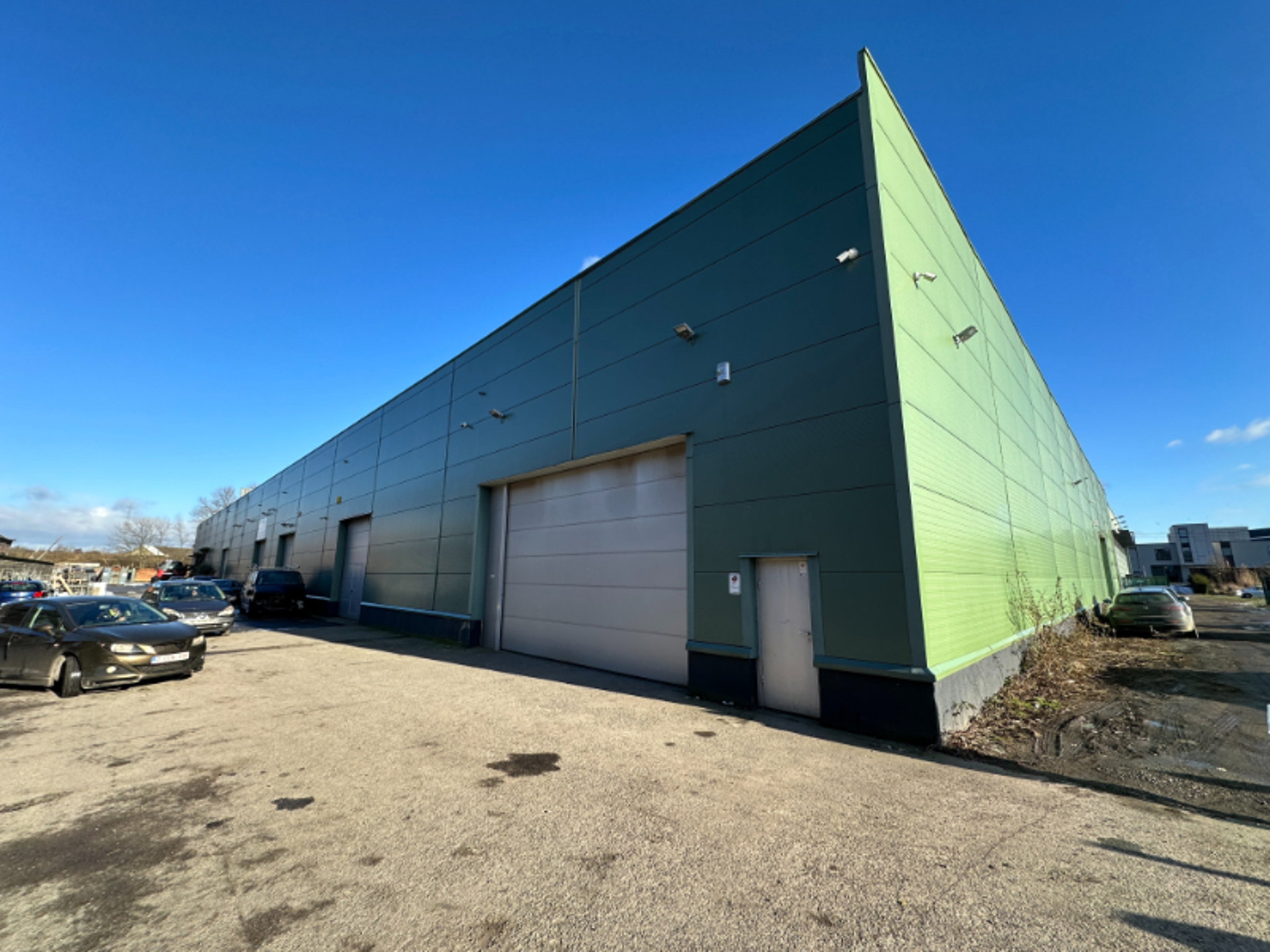 A louer entrepôt de +/- 370 m² avec une porte sectionnelle de 4m électrique ( unité A02 sur le plan ) , sanitaires , alarme intrusion + incendie + caméras de surveillance intérieures et extérieure, internet + Wifi. le bâtiment est équipé d'extincteurs avec contrat d’entretien éclairage led + éclairage extérieur temporisé .Installations électriques mono 240 Volts et triphasée 400Volts