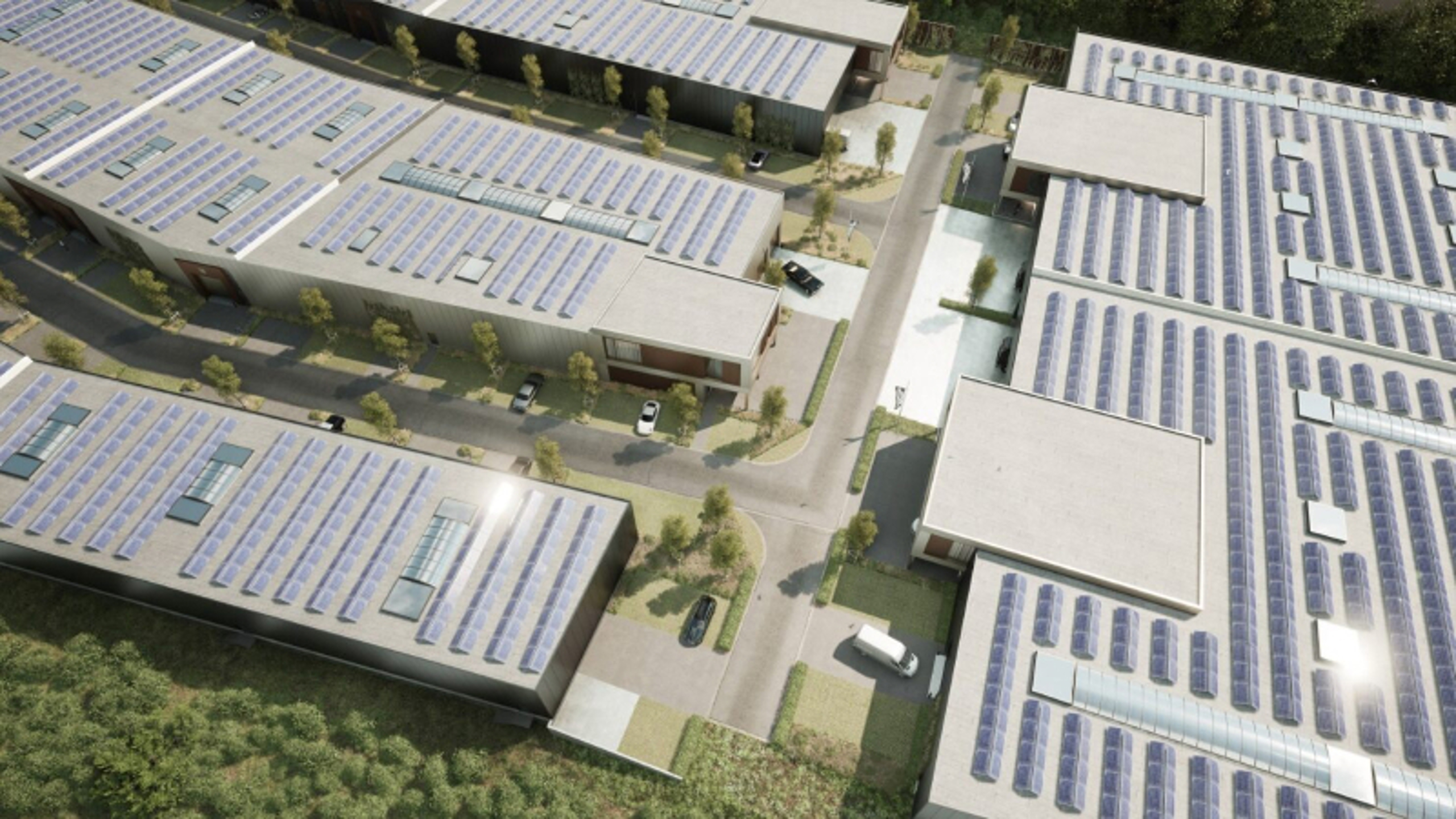 Bij deze nieuwbouw KMO-units wordt ook gedacht aan duurzaamheid. Het terrein streeft naar energieneutraliteit door het gebruik van zonnepanelen en warmtepompen.